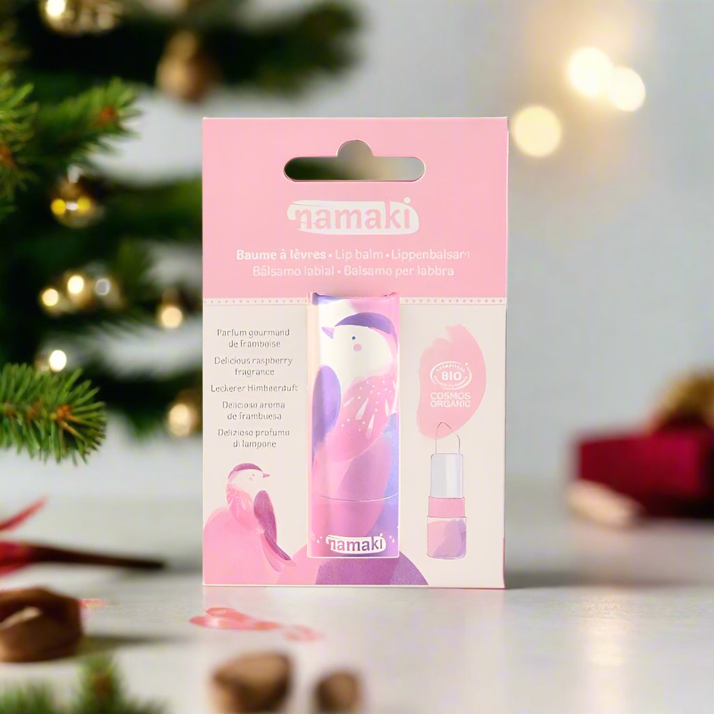 Namaki's Organic Raspberry Lip Balm is a true delight for your lips, reminiscent of an enchanted garden, surrounded by sweet, juicy raspberries. It moisturizes and protects, while giving them a delicious pink shine.