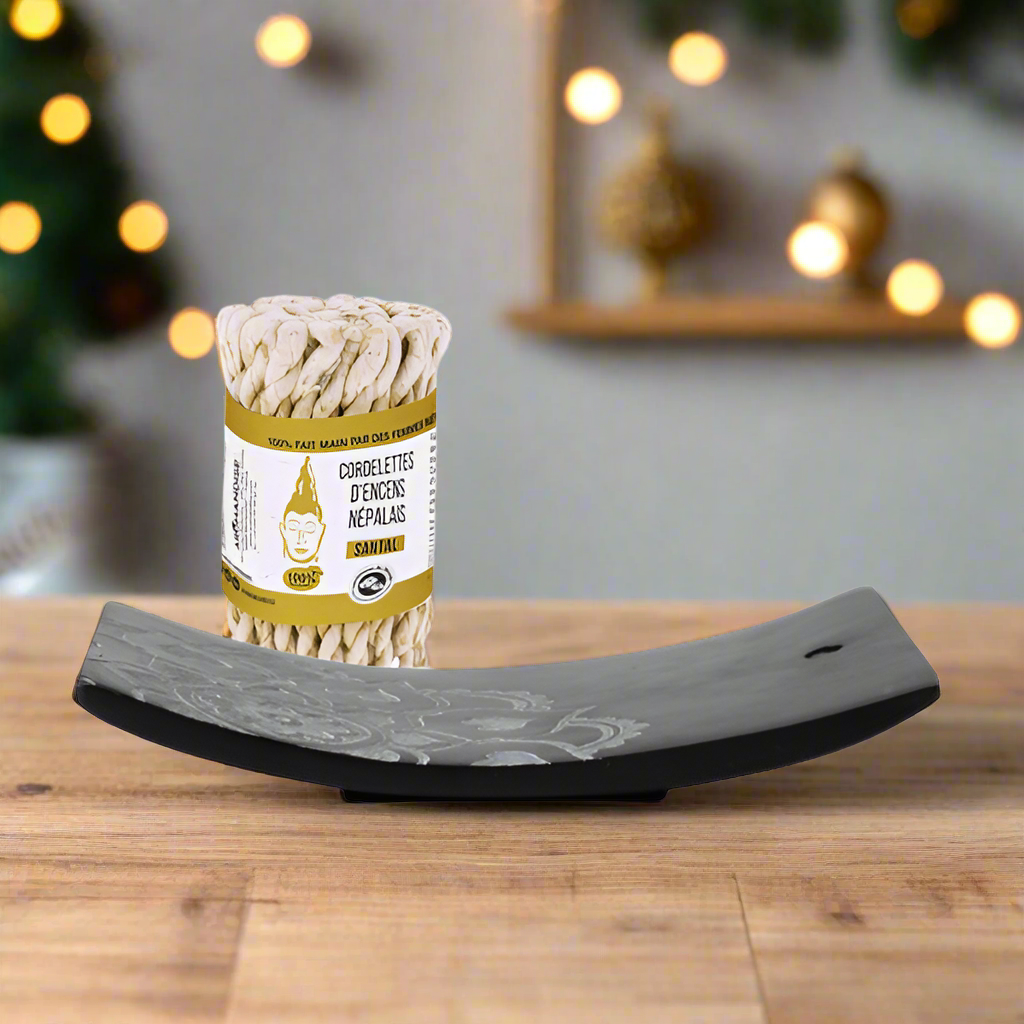 The Tibet incense holder, made of natural stone, complements the sensory experience with its elegant and simple shape. Made of resistant stone, it is perfect for Nepalese incense sticks, creating a cozy and serene environment. Its minimalist design adds a touch of sophistication, making it a unique decorative object for any space.