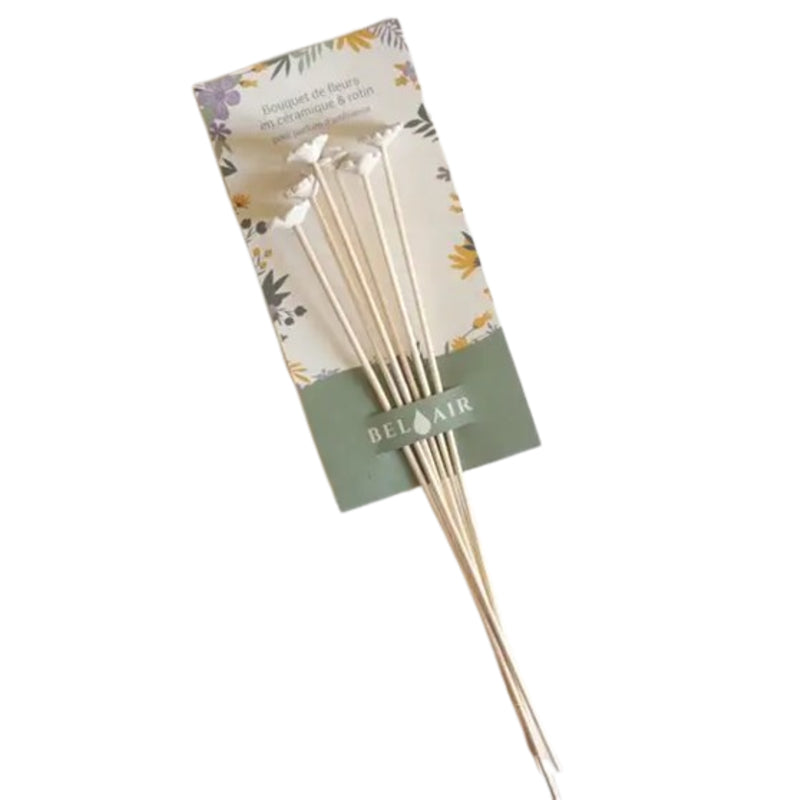 Difusor - Bouquet de 6 flores em cerâmica e rotim